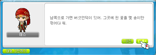 좋아. 그러면 버섯언덕 중턱에 가서 버섯언덕에 핀 꽃을 구해줘.
