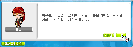 아무튼, 내 동생이 곧 태어나거든.이름은 카이린으로 지을 거라고 해.