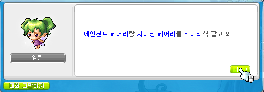 에이션트 페어리랑 샤이닝 페어리를 50마리씩 잡고 와.