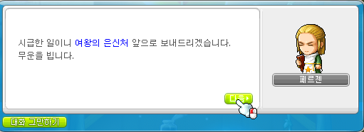 시급한 일이니 여왕의 은신처 앞으로 보내드리겠습니다.