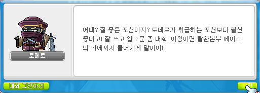 어때? 질 좋은 포션이지? 토네로가 취급하는 포션보다 훨씬 좋다고!