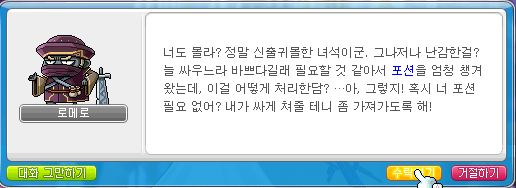 역시 너도 탈환본부 소속이니 포션이 필요했구나! 좋아! 그럼
