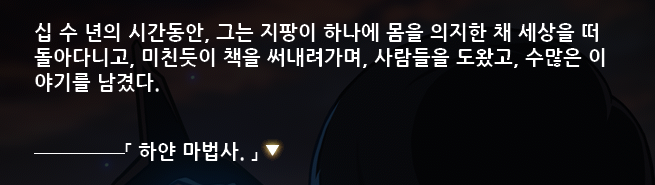 그 말만을 남기고, 하얀 마법사는 홀연히 자취를 감추었다 한다.