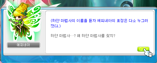 (하얀 마법사의 이름을 듣자 에피네아의 표정은 다소 누그러졌다.)